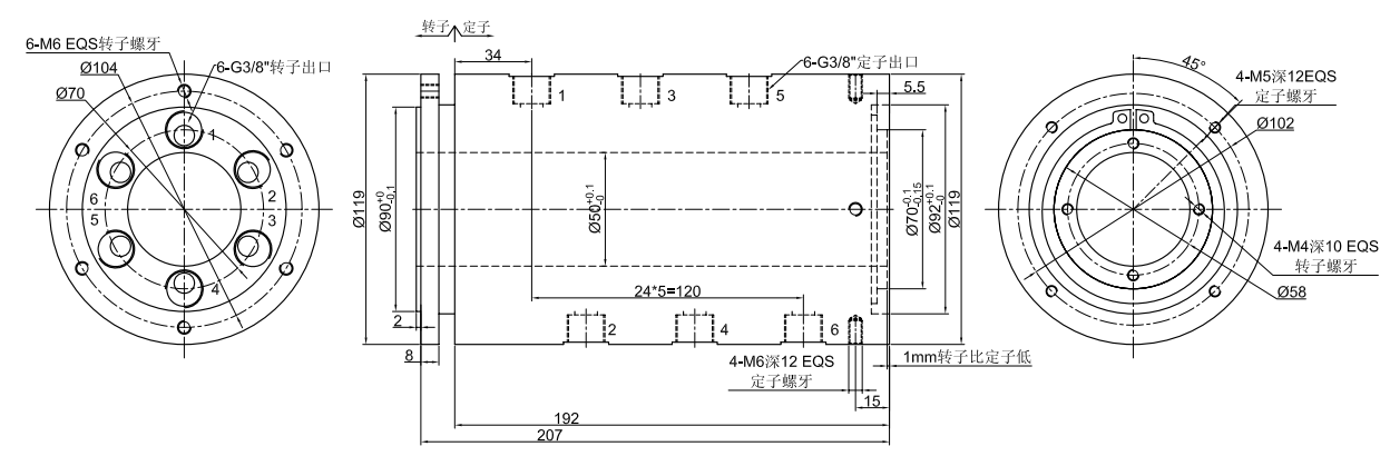 注:以下特別要求均可定制,交期會增加3~15天不等,費用增加5%~50%不等,本公司大部分基礎配件都有標準化,模塊化,內孔50mm空心氣動旋轉接頭,液壓旋轉接頭,氣滑環非標定制也可大大減少成本和交期。