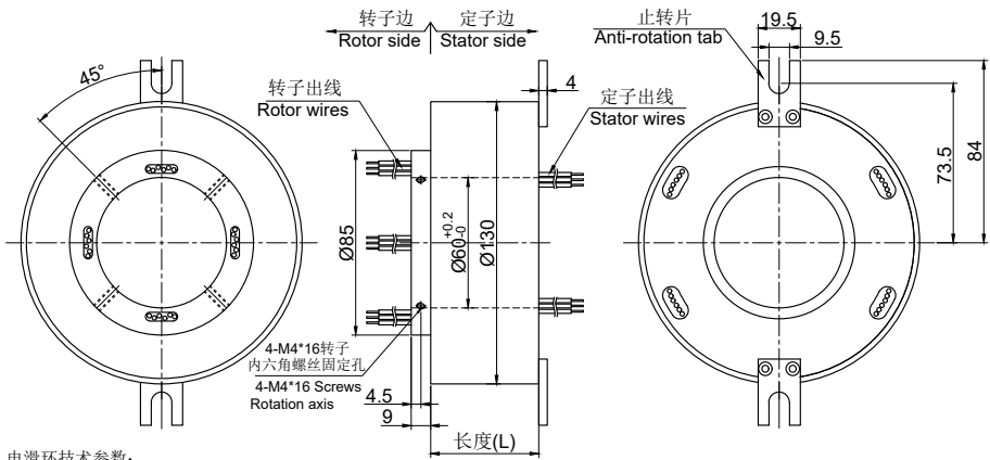 GT60130系列整體式精密導電滑環,主要應用于360度連續旋轉且需要保證電源,信號不能中斷的場合:多用于干燥設備(如烘干機、干燥滅菌設備、糧食烘干機等)、流延膜設備、三相交直流儀表檢定裝置、游樂設施(如兒 童乘騎系列游藝機、旋轉木馬)、研磨拋光機、起重機、安檢專用設備、電影設備等任意需要360°旋轉導電或傳輸各種控制信號的裝置。