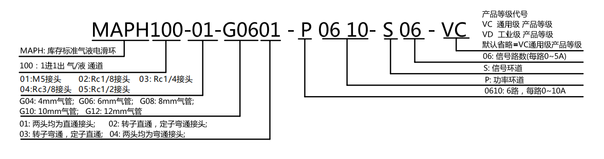 | 氣液旋轉接頭等級選型表 | |||