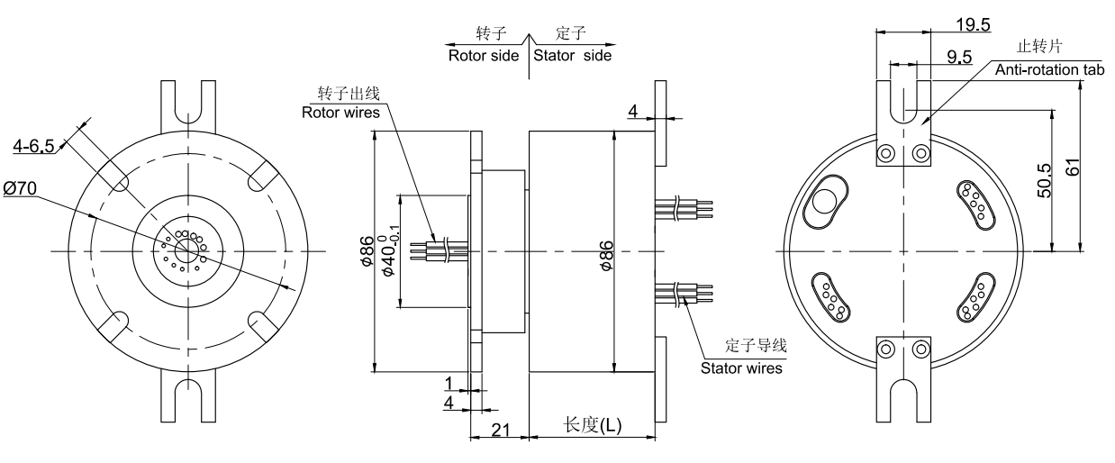 • · 工業總線滑環,ProfiNET滑環,DeviceNet導電滑環集電環端面法蘭安裝,外徑86mm的標準系列整體式精密工業總線滑環