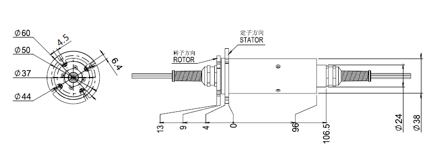• · 無接觸、無摩擦,壽命長,單芯可達1億轉以上