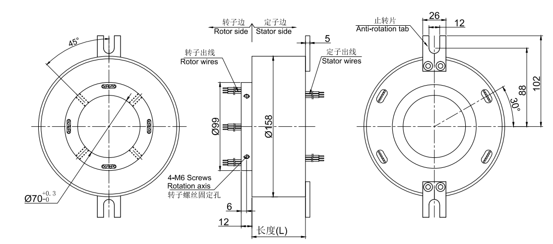 過孔式導電滑環是目前工業滑環里面性價比最高,最暢銷的一個系列產品,主要應用于360度連續旋轉且需要保證電源,信號不能中斷的場合:如各種雷達,安防設備,娛樂設備,各種機器人、機械手,各種浮空器,各種風力發電設備吹瓶機,燈檢機,各種轉臺,游樂游藝設備,虛擬3D,VR設備, 車載衛星天線,船載衛星電線,電纜卷筒,擦窗機設備,旋轉餐桌,旋轉舞臺,旋轉屏幕,旋轉餐廳,電動工程機械,最新的VR模擬仿真設備等。;