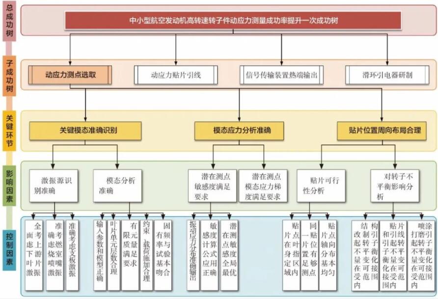 創新團隊通過對技術過程進行分析,結合工程實踐,梳理出如何從貼片點選取的技術角度提高動應力測量成功率的3個關鍵環節,向下分解得到6個影響因素和17個控制因素,對動應力貼片中的關鍵技術特征準確識別,找出了動應力貼片點位置優化、減小貼片點對轉子不平衡影響等技術薄弱環節,明確了模態識別、模態應力分析和貼片位置周向布局3個關鍵環節責任人,分別針對各關鍵環節的底事件制定措施分析表,結合防錯方法,開發了動應力敏感度分析檢查表單和指導書、高敏感度/低應力梯度的動應力貼片位置優化程序、動應力貼片位置周向布局優化程序,并建立了動應力貼片分析標準/規范,保證了動應力測點選取技術研究的一次成功。