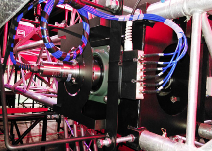 圖為應(yīng)用光纖滑環(huán)實(shí)現(xiàn)高速實(shí)時(shí)通訊的高端自動(dòng)化機(jī)器人