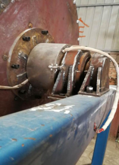 攪拌機由安裝于攪拌軸上的內外徑螺旋帶動桶體內物料翻動,使攪拌器在桶體內最大范圍翻動橡膠等物料,讓橡膠在桶體內循環、剪切滲混,完成橡膠在較短時間內快速均勻混合。因此需在攪拌機上使用大電流滑環為攪拌機同軸旋轉的設備需要供電及傳遞測溫信號。
