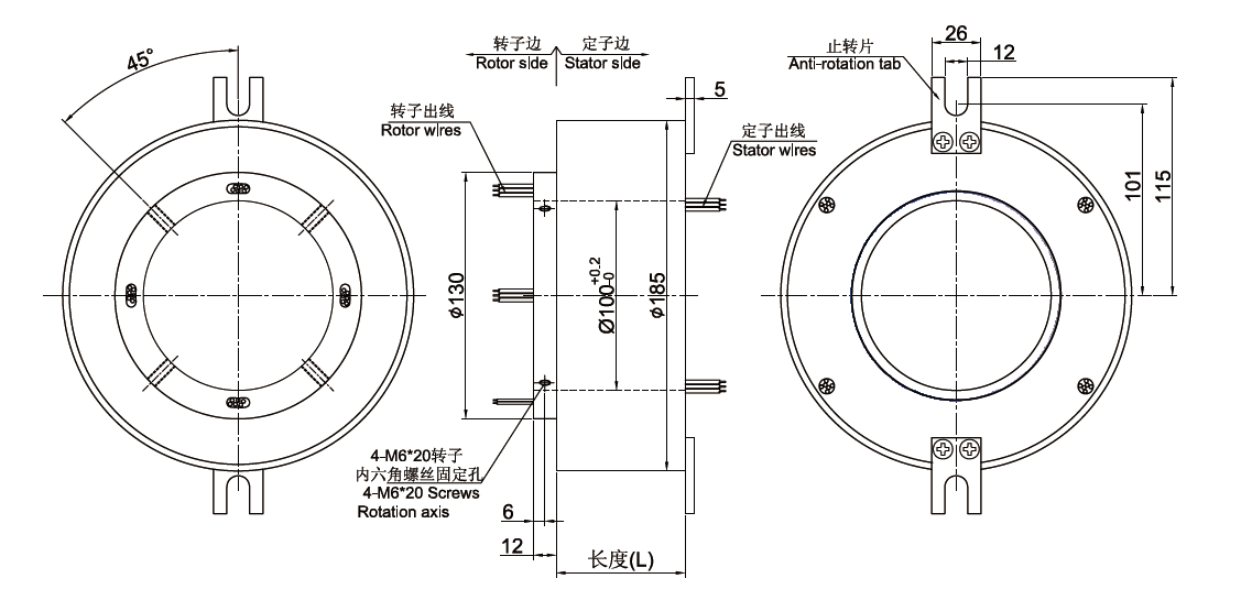 GT100185系列整體式精密導電滑環,主要應用于360度連續旋轉且需要保證電源,信號不能中斷的場合:多用于加熱滾筒、自動焊接設備、金屬表面加工設備、擠出流延復合設備、靜態扭矩傳感器、壓力變送器、工業機器 人、電線(網線)電纜生產設備、電子(紡織品)質量檢測儀器、機器人生產線、汽車涂裝和裝配線的車間設備改裝、加速度傳感器、研磨分散機、旋轉餐桌等任意需要360°旋轉導電或傳輸各種控制信號的裝置。